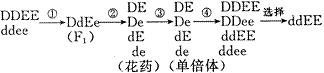 36、下图为利用纯合高秆(D)抗病(E)小麦和纯合矮秆(d)染病(e)小麦快速培育纯合优良小麦品种矮秆抗病小麦(ddEE)的示意图,有关此图叙述不正确的是