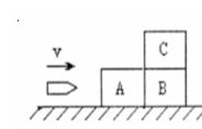 6. 如图所示,三块完全相同的木块,放在水平地面上,已知所有接触面均光滑。一颗子弹水平地从A射入,最后又从B穿出,则子弹穿出B后,三木块的速率关系是( )