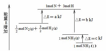 (3)式变换为:1mol NH3(g)= 1mol NH3(l) ⊿E= -c kJ---------------------------(5)式