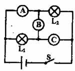 在如图所示的电路中,A、B、C分别表示理想电流表或电压表,它们的示数以安或伏为单位.当电键S闭合后,A、B、C三表示数分别为l、2、3
