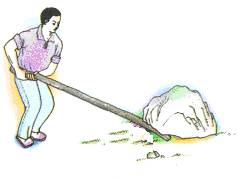 例题:去掉撬棒下的小石头,能用什么方法将石头撬起呢?假如能请画出它的杠杆示意图。
