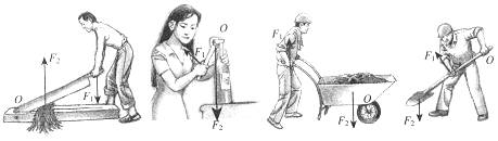 2. 画出下图中各杠杆实例的动力臂和阻力臂,并指出是省力还是费力的杠杆?