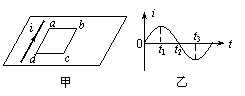 如甲图所示,光滑的水平桌面上固定着一根绝缘的长直导线,可以自由移动的矩形导线框abcd靠近长直导线静放在桌面上.当长直导线中的电流按乙图所示的规律变化时(甲图中电流所示的方向为正方向),则( A )