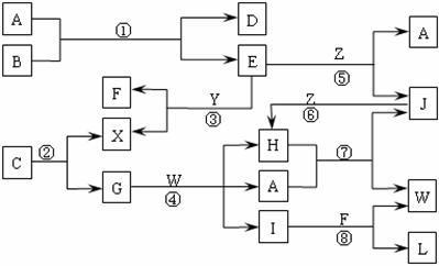 Ⅰ.A是无色液体,L是不溶于稀硝酸的白色沉淀,E、F、H、J、X、Y、Z是气体;
