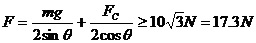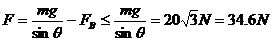 所以力F大小应满足的条件是17.3 N≤F≤34. 6 N. (2分)