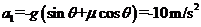 根据牛顿第二定律 mgsinθ-μmgcosθ=ma2 (1分)