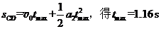 根据匀减变速直线运动规律 a1= (2分)