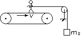 17.如图所示为一种测定运动员体能的装置,运动员的质量为m1,绳的一端拴在腰间并沿水平方向跨过滑轮(不计滑轮质量及摩擦),绳的下端悬挂一个质量为m2的重物,人用力蹬传送带而人的重心不动,使传送带以速率v匀速向右运动。下面说法中正确的是( )