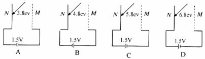 20. 如图,N为钨板,M为金属网,它们分别与电池的两极相连,各电池的电动势和极性已在图中标出,已知金属钨的逸出功为4.5eV。现分别用不同能量的光子照射钨板(各光子的能量在图上标出),那么下列各图中,光电子可能到达金属网的是( )