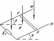 17.如图所示,两条间距为d,表面光滑的平行金属导轨M、N,导轨平面与水平面的倾角为θ,导轨的一端有一电池组与M、N相连,整个装置处在方向竖直向下、磁感强度为B的匀强磁场中。现将一质量为m的水平金属棒PQ与轨道垂直地置于导轨上,这时两导轨与金属棒在回路中的电阻值为R,PQ棒刚好处于静止状态。设电池组的内阻为r,试计算电池组的电动势E,并标明极性。
