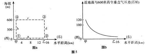 下图5中图a示意我国某地区的热力环流剖面图,图b示意图a地区近地面与600米高