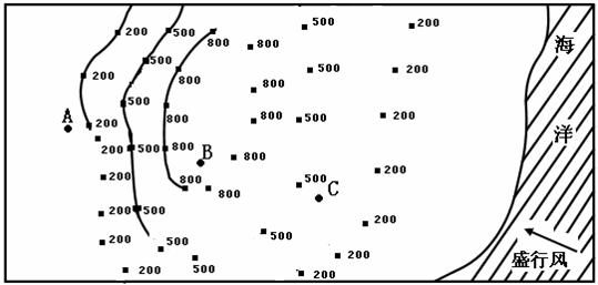 (3)学校地理探究小组的同学在当地气象部门查找资料时发现,C地的年降水量为1600mm,而A地的年降水量仅为60mm,这是为什么呢?