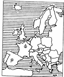 读欧洲西部图。图中数字所代表的都是著名的旅游胜地,若按下列要求进行旅游活动,应该选择图中数字中的哪一地点?⑴乘船游览峡湾并观看午夜太阳,应选择____处。
