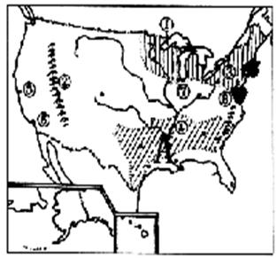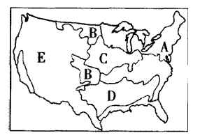 2、读右侧“美国农业带”图,回答:填出图中字母代表的农业带名称: