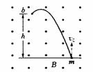 如图所示,一带电为-q的小球,质量为m,以初速度v0竖直向上射入水平方向的匀强磁场中,磁感应强度为B。当小球在竖直方向运动h高度时,球在b点上所受的磁场力多大?