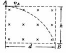 [例1]一电子以垂直于匀强磁场的速度vA,从A处进入长为d宽为h的磁场区域如图,发生偏移而从B处离开磁场,若电量为e,磁感应强度为B,弧AB的长为L,则(B)
