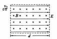 粒子通过一匀强磁场和匀强电场区域,两场的方向互相垂直,如图所示,电场强度E=2×104V/m,磁感应强度B=0.2T,电场和磁场的水平宽度d=0.2m,则每个