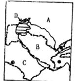 2)、填写图中主要国家和海域名称:A 海峡、B 国家、C 国家、