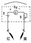[解析]欧姆表的表头是一个电流表,当被测电阻接入电路,回路闭合,表头就有示数,由欧姆定律可知,表头示数随被测电阻阻值的改变而改变。电流应从红笔流入欧姆表,从黑笔流出,多用表作欧姆表使用时,电源在表内,流入的电流至电源负极,故红笔应当接电池负极;当两表笔短接时,被测电阻为零,电路电流最大,指针指最右端,当两表笔断开,相当于被测电阻