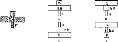 3.(2001年广东卷)一片树林中,树、昆虫和食虫鸟类的个体数比例关系如下图所示。下列选项能正确表示树、昆虫、食虫鸟之间的能量流动关系的是(选项方框面积表示能量的大小)