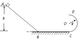 35.(18分)如图所示,在竖直平面内,由斜面和圆形轨道分别与水平面相切连接而成的光滑轨道,圆形轨道的半径为R。质量为m的小物块从斜面上距水平面高为h=2.5R的A点由静止开始下滑,物块通过轨道连接处的B、C点时,无机械能损失。求: