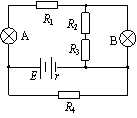 如图所示电路中,电源电动势为E、内阻为r,R1、R2、R3、R4均为定值电阻,A、B为两个小灯泡。当电路中某电阻发生故障后,A灯变亮、B灯变暗,则该故障可能为( )