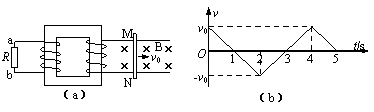 如图(a)所示装置中,左侧线圈与一个定值电阻R相连,右侧线圈与两根平行导轨相连,导轨所在区域有一方向垂直导轨平面向下的匀强磁场B,现在垂直导轨方向上放置一金属棒MN,金属棒及线圈电阻恒定,导轨电阻不计。当t=0时,金属棒MN在外力作用下,以一定初速度v0开始向右运动,此后的速度v随时间t变化情况如图(b)所示。设a→b为正方向,下图中能正确表示电阻R中电流IR随时间t变化情况的是( )