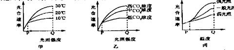 (3)甲、乙、丙三图分别表示几个环境因素对马铃薯光合速率的影响,除了图中所示因素外,其他因素均控制在较适宜的范围。请据图回答以下问题: