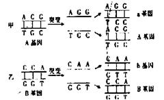 (10分)已知某一植物种群是雌雄同花的纯合相同晶系,科研人员在种植过程中偶然发现有两棵植株(甲和乙)各有一个基因发生了突变,下图为甲植株的A基因和乙植株的B基因发生突变的过程。据图分析,回答下列问题: