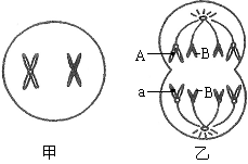 A.甲是减数分裂图像,乙是有丝分裂图像