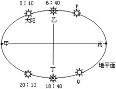 下图为我国某地二分二至日出、日落的时间(北京时间)和太阳位置示意图,分析判断10-12题