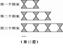 15.用正三角形和正六边形按如图所示的规律拼图案,即从第二个图案开始,每个图案都比上一个图案多一个正六边形和两个正三角形,则第n个图案中正三角形的个数为 (用含n的代数式表示).