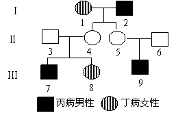 c、若Ⅲ-8和Ⅲ-9婚配,子女中只患丙或丁一种