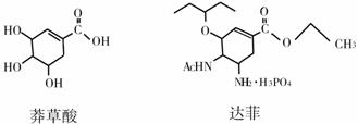 达菲是治疗甲型H1N1流感的特效药,它是由我国中药材“八角”(大茴香)的提取物--莽草酸为原料合成的。已知莽草酸和达菲的结构式如下: