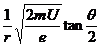 20. 山东省潍坊市2010届高三上学期阶段性测试电视机的显像管中,电子束的偏转是用磁偏转技术实现的.电子束经过电压为U的加速电场后,进入一圆形匀强磁场区,如图所示.磁场方向垂直于圆面.磁场区的中心为O,半径为r.当不加磁场时,电子束将通过O点而打到屏幕的中心M点.为了让电子束射到屏幕边缘P,需要加磁场,使电子束偏转一已知角度θ,此时磁场的磁感应强度B应为多少?(电子荷质比为e/m,重力不计)