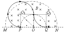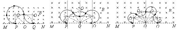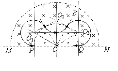 25. 江苏省淮阴中学2010届高三摸底考试如图所示,直线MN下方无磁场,上方空间存在两个匀强磁场,其分界线是半径为R的半圆,两侧的磁场方向相反且垂直于纸面,磁感应强度大小都为B。现有一质量为m、电荷量为q的带负电微粒从P点沿半径方向向左侧射出,最终打到Q点,不计微粒的重力。求: