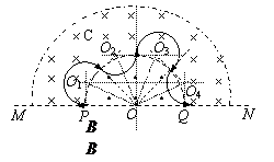 由图可知,它们必须从经O点作圆运动的各圆的最高点飞离磁场。