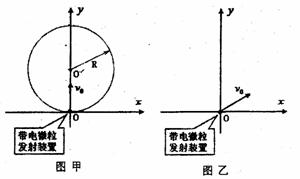 浙江省金华一中2010届高三12月联考如图甲所示,x轴正方向水平向右,y轴正方向竖直向上。在xoy平面内有与y轴平行的匀强电场,在半径为R的圆形区域内加有与xoy平面垂直的匀强磁场。在坐标原点O处放置一带电微粒发射装置,它可以连续不断地发射具有相同质量m、电荷量q(