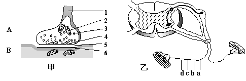 5.(10威舍中学期中考试)下列图示中甲为突触结构,乙为反射弧模式图,关于二图的说法不正确的是 ( )