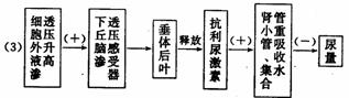 (3)人体能通过体液和神经调节维持内环境的稳定。例如,细胞外液渗透压升高时,尿量会减少,从而保持了细胞外液渗透压的相对稳定。完成下列调节机制的图解。