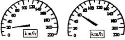 如图所示是汽车中的速度计,某同学在汽车中观察速度计指针位置的变化.开始时指针指示在如左图所示的位置,经过7s后指针指示在如右图所示位置,若汽车做匀变速直线运动,那么它的加速度约为 ( )