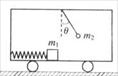 簧相连接,弹簧的劲度系数为k。在车厢的顶部用一根细线悬挂一质量为m2的小球。某段时间内发现细线与竖直方向的夹角为θ,在这段时间内木块与车厢也保持相对静止,如图所示。不计木块与车厢底部的摩擦力,则在这段时间内弹簧的形变量为 ( )