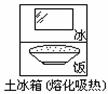 ①夏天,在饭菜的上面放冰块可防止饭菜变馊。(冰熔化吸热,冷空气下沉)