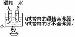 ③装有酒精的塑料袋挤瘪(排尽空气)后,放入800C以上的水中,塑料袋变鼓了。(酒精汽化成了蒸气。酒精沸点为780C,高于780C时为气态)