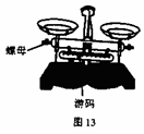 2、(广东省2006年)如图13所示,在水平桌面上使用天平时发现横梁有点向右倾斜,要将它调到平衡状态,请写出必须进行的步骤是: