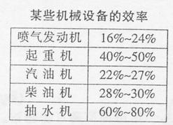 (4)随后,瑞瑞同学查阅了有关机械效率知识的资料,看到右表中的一组数据,请你找 出这些机械设备效率的共同特点.