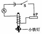 例4:(2006年盐城市)小张同学在做“制作、研究电磁铁”的实验中,猜想电磁铁的磁性强弱应该与电流大小有关,还