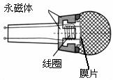 (2006年黄冈市)如图是动圈式麦克风的结构示意图。当你对着它说话或唱歌时,人声带由于 而产生的声音,通过 传播到膜片,使膜片以及与膜片相连的线圈在磁场中运动,线圈的这种运动能产生随着声音变化而变化的 ,线圈在运动中能量的转化情况是 。