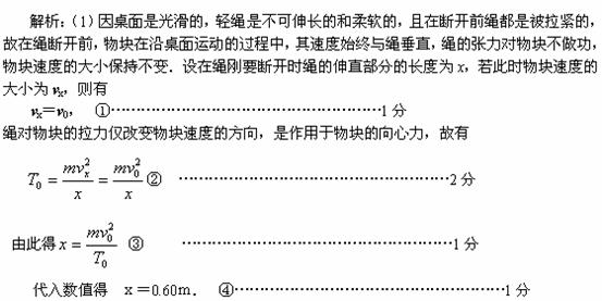 (2)设在绳刚要断开时,物块位于桌面上的P点,BP是绳的伸直部分,物块速度v0的方向如图1所示.由题意可知,OB⊥BP.因物块离开桌面时的速度仍为v0,物块离开桌面后便做初速度为v0的平抛运动,设平抛运动经历的时间为t,则有