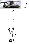 16. 贵州省开阳三中2010届高三10月月考如图11所示,在一次救灾工作中,一架沿水平直线飞行的直升机A,用悬索(重力可忽略不计)救护困在湖水中的伤员B.在直升机A和伤员B以相同的水平速度匀速运动的同时,悬索将伤员吊起,在某一段时间内,A、B之间的距离以l=H-t2(式中H为直升机A离地面的高度,各物理量的单位均为国际单位制单位)规律变化,则在这段时间内( BC )